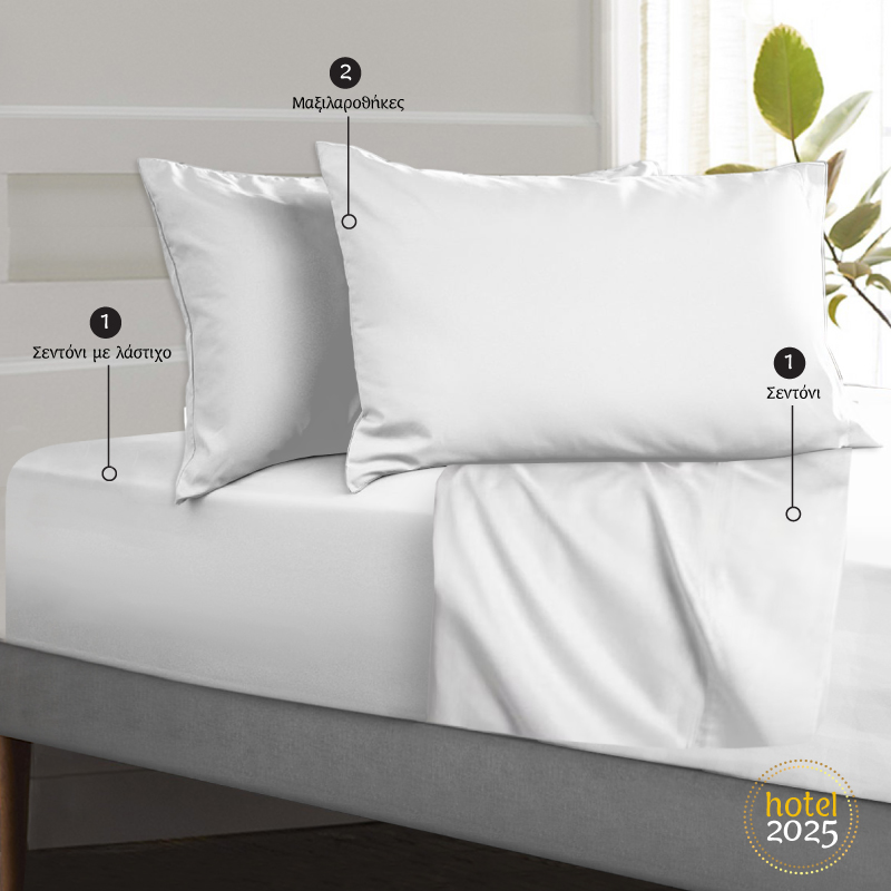 To σετ περιλαμβάνει 1 πανωσέντονο 240×260 , 1 κατωσέντονο με λάστιχο 160×200+30 και 2 μαξιλαροθήκες 52×72