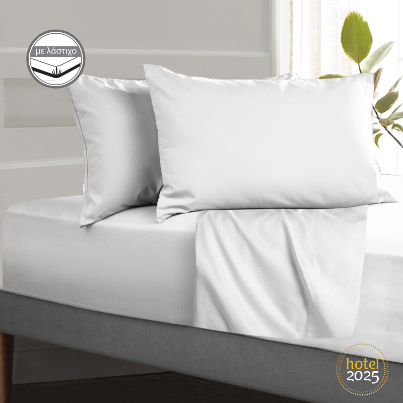 Gosmart Home 150tc Περκάλι Σετ 4τμχ (2 Σεντόνια+2 Μαξιλαροθήκες) Υπέρδιπλα Comfort line με λάστιχο 160×200+30 & 240×260 Λευκό