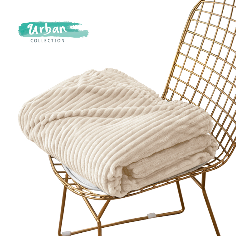 Go Smart Home Κουβέρτα Υπέρδιπλη 220×240 Coral Βελουτέ Stripe Εκρού