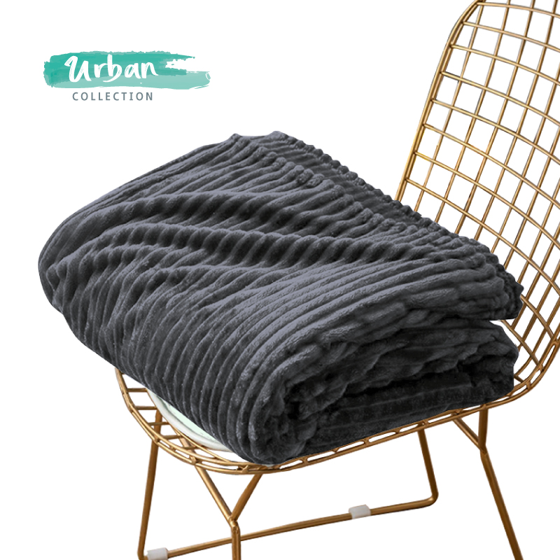 Go Smart Home Κουβέρτα Υπέρδιπλη 220×240 Coral Βελουτέ Stripe Ανθρακί