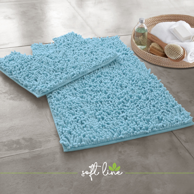 GoSmart Extra Line soft touch Αντιολισθητικό Σετ Πατάκι 2τμχ 50χ80/50χ40 Γαλάζιο