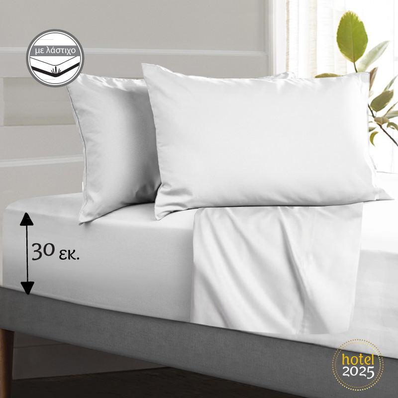 Gosmart Home 150tc Περκάλι Σετ 4τμχ (2 Σεντόνια+2 Μαξιλαροθήκες) Διπλά Comfort line με λάστιχο 140×200+30 & 220×260 Λευκό