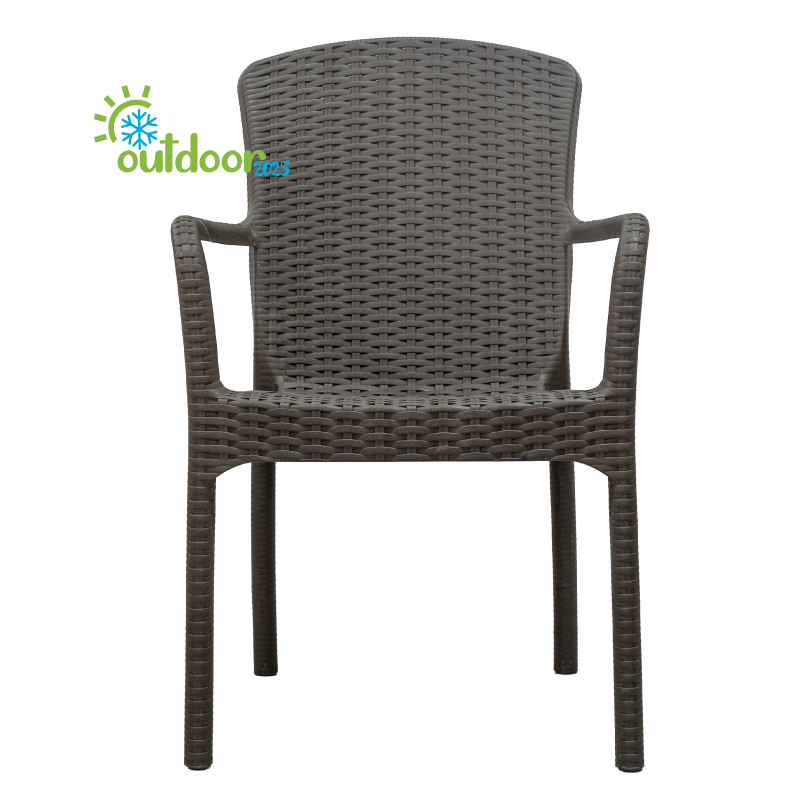 Καρέκλα πολυπροπυλενίου τύπου rattan, στοιβαζόμενη ενισχυμένη με μπράτσα από αγνό πλαστικό (πρωτογενές υλικό), όχι ανακυκλωμένο, πρακτική και πολύ γερή. Το κάθισμά της είναι φαρδύ για μεγαλύτερη άνεση. Η σύνθεση του πλαστικού της την καθιστά ανθεκτική στο χρόνο. Λιτές γραμμές, ιδανικές διαστάσεις για επαγγελματική χρήση, για εκδηλώσεις και όχι μόνο. Μια ακόμα έξυπνη προσφορά από την Go Smart με άριστη σχέση ποιότητας & τιμής.