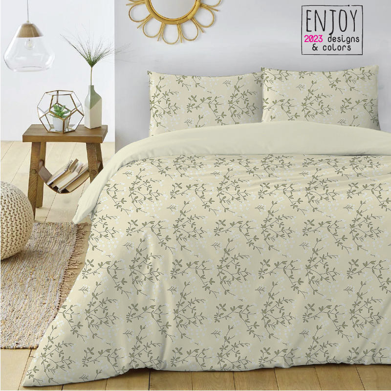 Μια ιδανική σειρά λευκών ειδών έξυπνη και πρωτότυπη κατασκευασμένη με γνώμονα εσάς! Διατίθενται μοντέρνοι και γήινοι χρωματισμοί από νήματα επεξεργασμένα να μην δημιουργούν κόμπους κατασκευής 80% ποιοτικό βαμβάκι (όχι ανακυκλωμένο) για την απαλότητα και 20% ποιοτικού πολυεστέρα δίνοντας ανθεκτικότητα στη χρήση και ευκολία στο σιδέρωμα διατηρώντας τα χρώματά τους ζωντανά και χαρίζοντάς σας έναν ευχάριστο ύπνο χειμώνα καλοκαίρι σε μοναδική τιμή για εσάς!