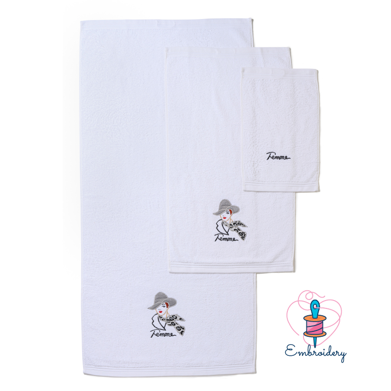 Isadore Lorraine Σετ Πετσέτες 3τμχ με Κέντημα 100% Βαμβακερές Πενιέ 30χ50/50χ90/70χ140 510gr/τμ Λευκό Femme