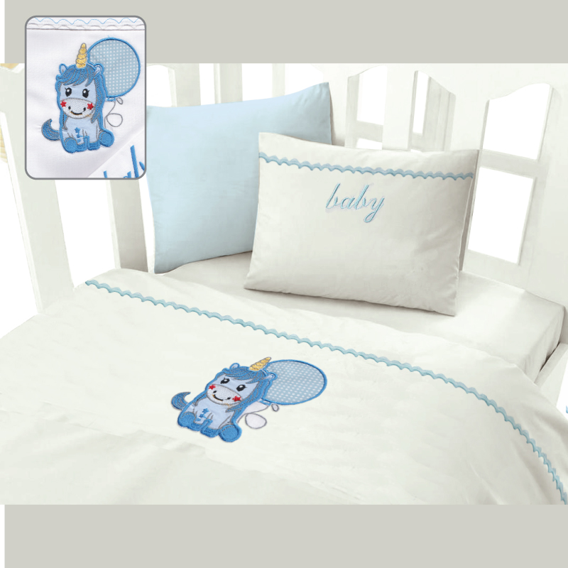 Isadore Lorraine Σετ Σεντόνια Βρεφικά με Κέντημα 120×160 Unicorn Blue
